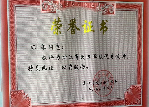 近日,浙江省民办教育协会发布了《关于表彰2021年民办学校优秀个人的决定》,我校陈澍同志获评浙江省民办学校优秀管理工作者,李春辉、陈露两位教师获评浙江省民办学校优秀教师。