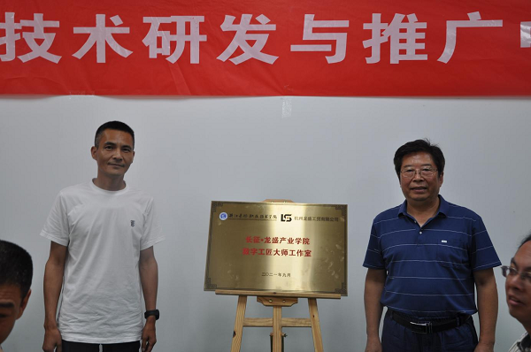 随后,在热烈的掌声中,在观礼师生的见证下,王其军与金忠豪共同为“长征·龙盛磨抛机器人产业学院职业技能培训基地”“长征·龙盛磨抛机器人技术研发与推广中心”揭牌,杜宝山与钱浩亮共同为“长征·龙盛产业学院数字工匠大师工作室”揭牌,标志着由杭州龙盛公司捐助全套机器人设备而组建的“长征·龙盛磨抛机器人产业学院职业技能培训基地”“长征·龙盛磨抛机器人技术研发与推广中心”正式落成!