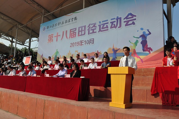 2019年10月24日,浙江长征职业技术学院第十八届田径运动会开幕式在校田径场隆重举行。参加开幕式的有校党委书记常务副院长王其军教授、副院长杜宝山教授、副院长许迈进教授、副院长高创宽教授,以及各系主任、总支书记和部门负责人。开幕式由副院长杜宝山教授主持,副院长许迈进教授致开幕词,党委书记王其军教授宣布第十八届田径运动会开幕。