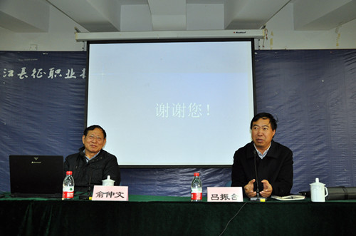 12月17日下午,中国职业技术教育学会副会长、民办分会会长俞仲文莅临我院,并作了题为《加快转型升级,努力打造高水平、有特色的浙江长征职院》的报告。学院领导、全体教师和辅导员参加,执行院长吕振合教授主持了报告会。