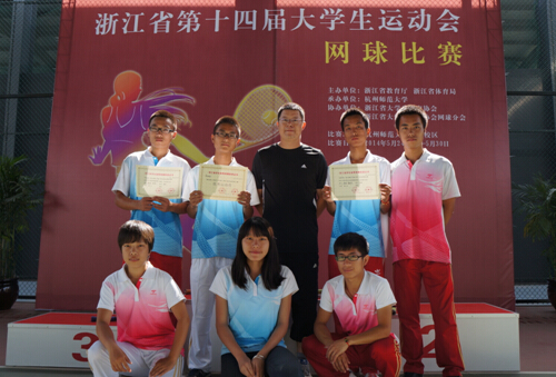 2014年5月26日浙江省第十四届大学生运动会网球赛在杭州师范大学仓前校区盛大开幕,本次大赛全省共有47个高校派队参赛,参赛选手和教练共计430多名,我院张自强教练带领6名运动员参赛。
