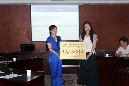 会上首先由范平主任致欢迎辞,范主任的发言热情诚恳,表达了对双方合作的祝愿,对现阶段合作工作的认可和肯定,同时也对灵隐景区的高度重视表示了感谢。灵隐管理处张海珍主任致辞:感谢长征学院的热情接待,对于合作给予了肯定,同时也表达了深入合作的意愿。紧接着双方在和谐热烈的气氛中进行授牌和接牌活动。