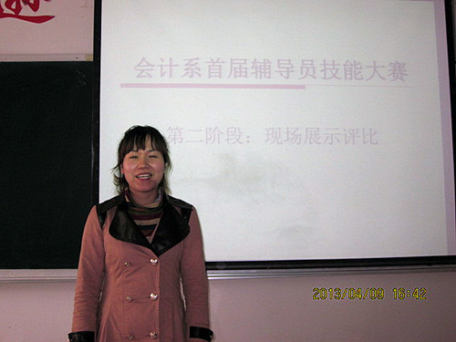 根据学院的部署,为了推动系辅导员职业化、专业化发展,提升辅导员职业技能和工作水平,会计系在2013年4月上旬开展首届辅导员职业技能大赛,4月9日下午在1号教学楼1207教室进行比赛第二阶段——现场展示评比。