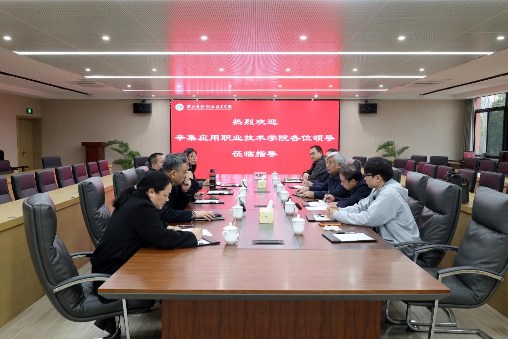 刁哲军对我校的热情接待表示感谢,并简要介绍了辛集应用职业技术学院的基本情况、办学宗旨、办学定位、专业设置及未来发展规划。他表示,辛集应用职业技术学院作为辛集市首所高等职业院校,致力于立足石家庄、服务京津冀协同发展,此次专程前来交流,希望能充分借鉴浙江长征职业技术学院在职业教育领域的先进经验和成熟做法,拓宽办学思路、破解发展难题。