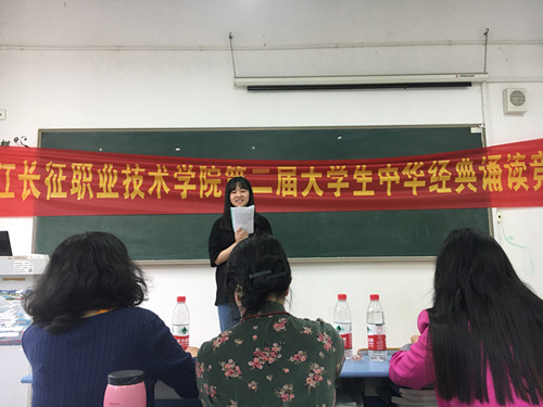 为贯彻习近平总书记关于传统文化教育的系列讲话和中央办公厅、国务院办公厅《关于实施中华优秀传统文化传承发展工程的意见》精神,2017年5月24日14点,应用语言系文秘教研室在2107教室举行了“浙江长征职业技术学院第二届中华经典诵读竞赛”。