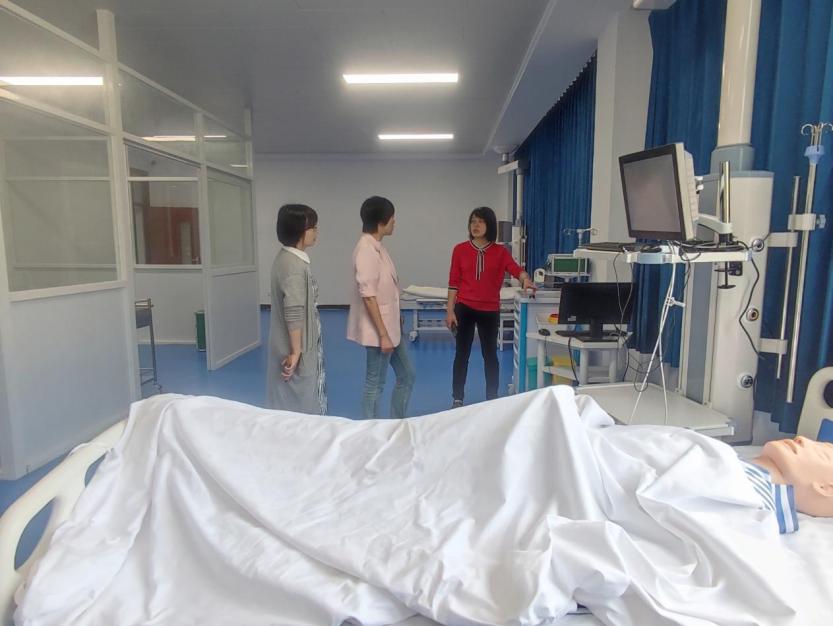 大家一同参观了医护楼和实训楼,应佳盈向来访客人介绍了护理与健康学院的人体解剖实训室、生理实训室、妇产科实训室、基护实训室、ICU实训室、内外科实训室及健康评估实训室等。吴含荃对学院的实训室建设给予了充分肯定,也为学院的进一步发展提了宝贵的建设性建议。
