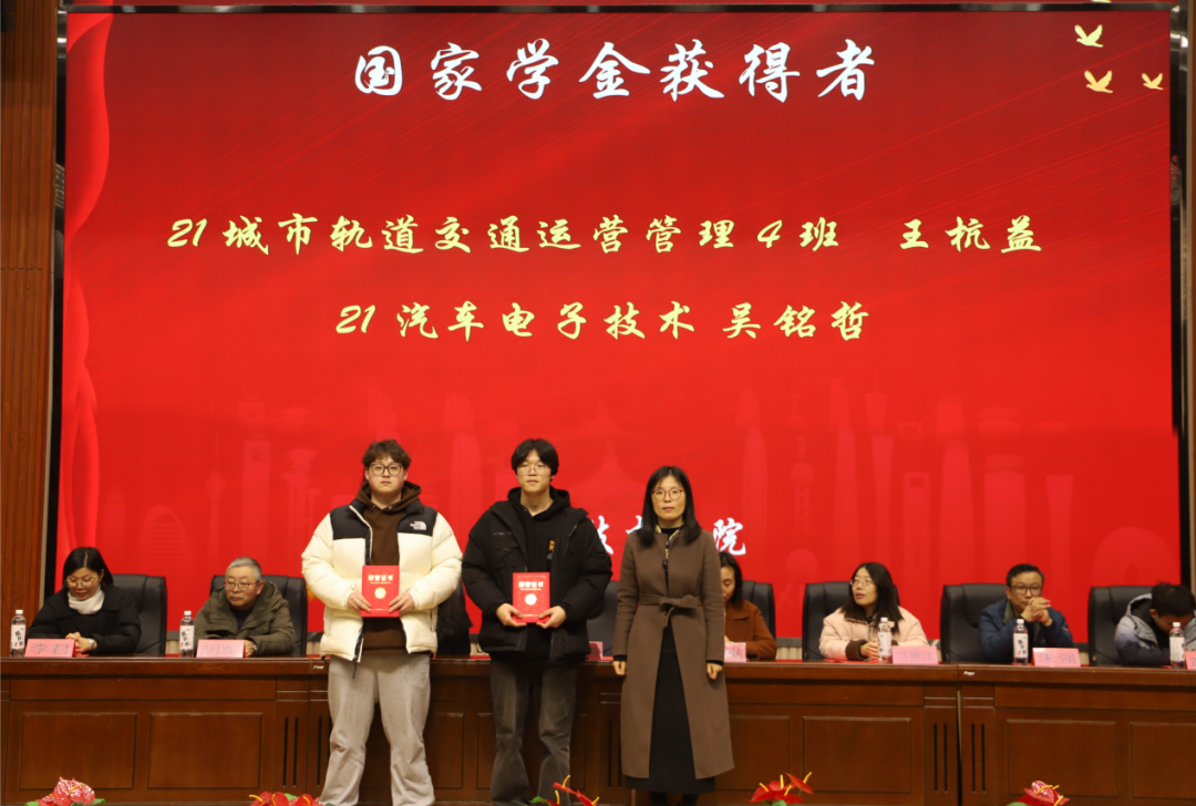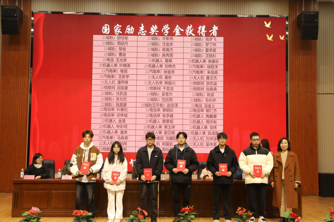 随后,佟珊珊宣读了智能技术学院2023学年国家奖学金、省政府奖学金、校级奖学金、优秀学生干部等各类评奖评优的表彰决定,并由学院领导为获奖代表颁奖。